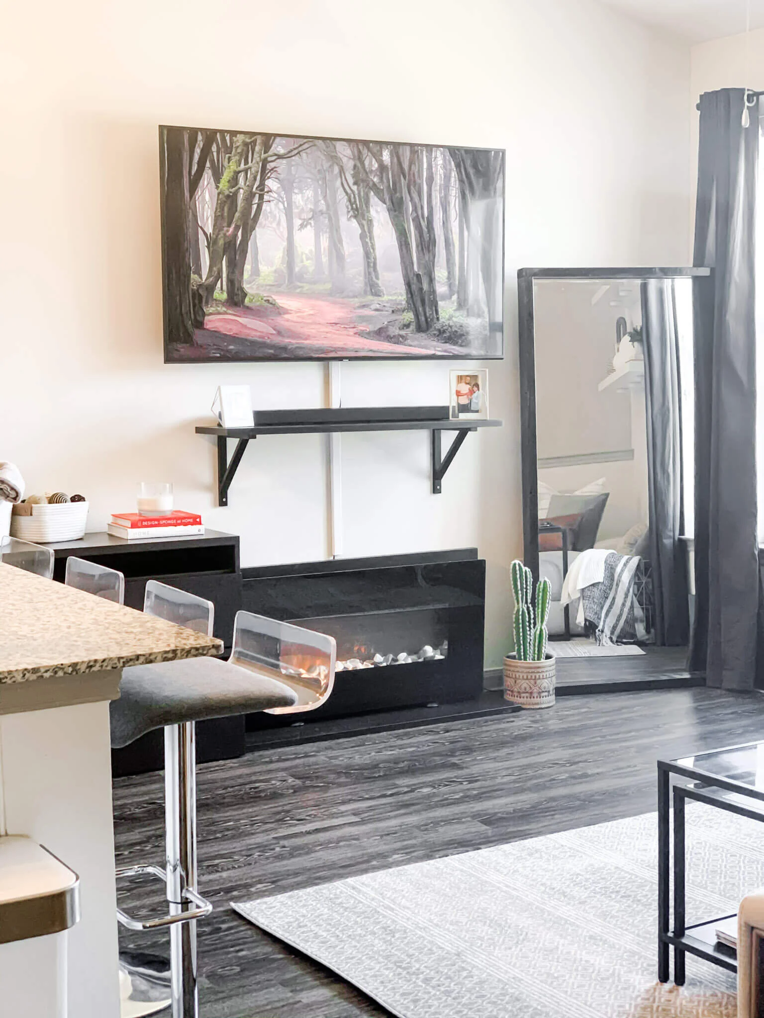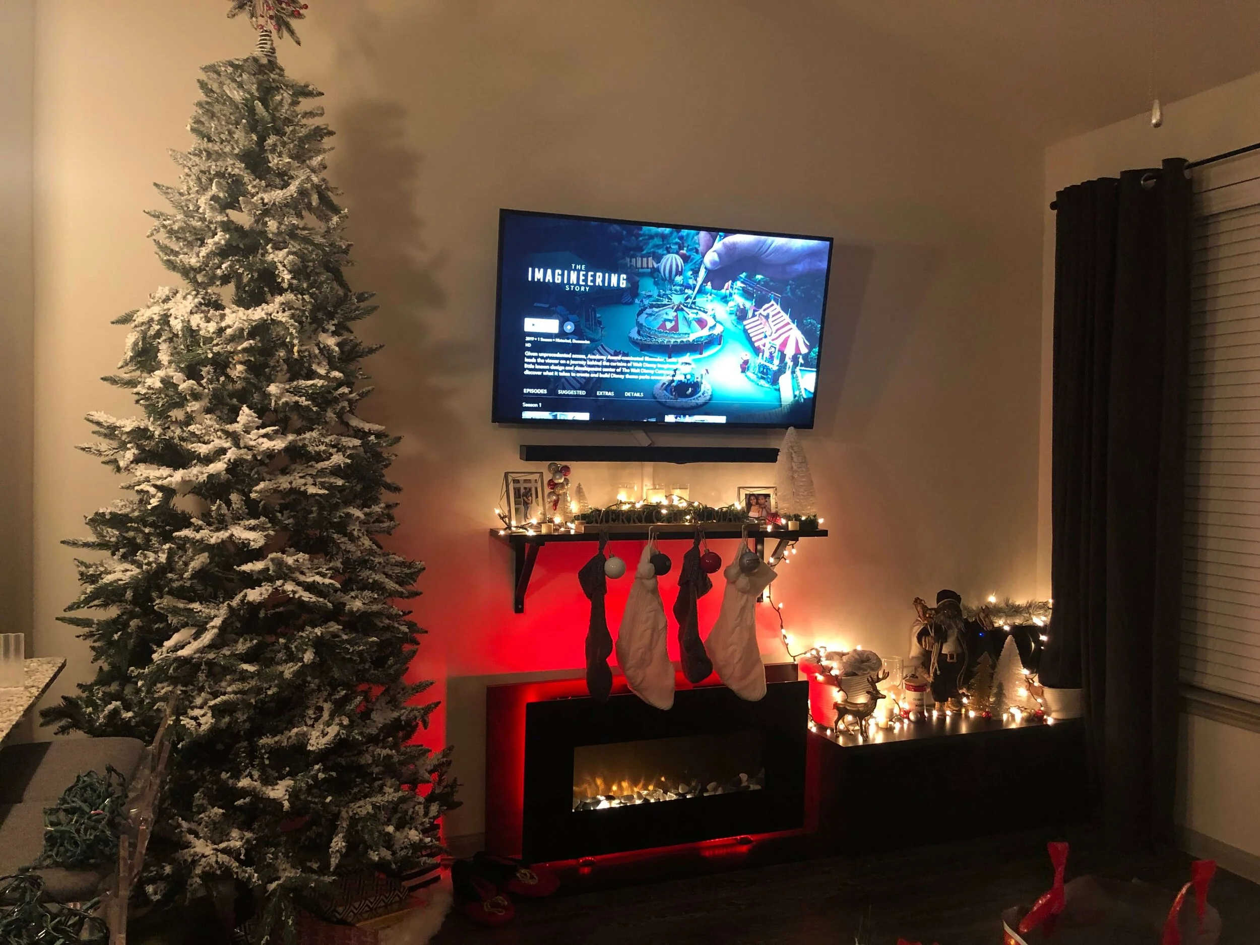 Looking at it again now, I don’t think it looks terrible, but I always felt like it could look better. My original plan was to mount the fireplace on the wall and get taller media cabinets, but the placement of the wall studs ruined that dream. So it stayed like this for a few months until Christmas time…